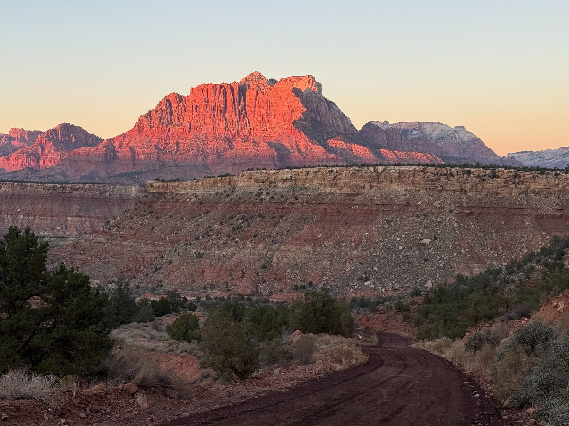 Drive-up sunset photo spot, 30 minutes from springdale. All paved roads. Explore the area from mesa overlook trailhead.