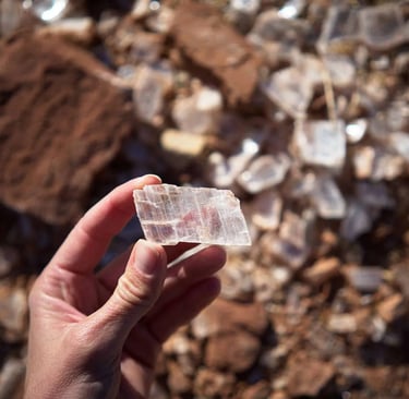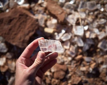 The Feller Stone family holds the claim and has the exclusive right to remove the selenite for commercial sales. They ask first and foremost that you use common sense when visiting the site and use caution around the pit area.